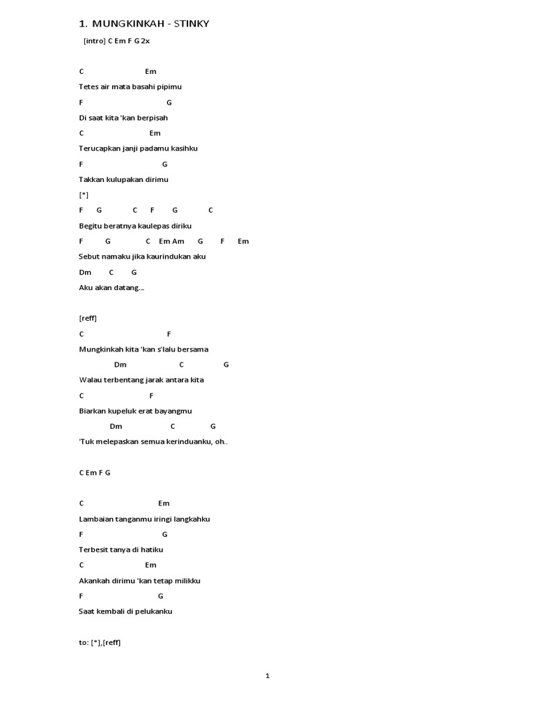 Enjoy the videos and music you love upload original content and share it all with friends family and the world on YouTube. Chord stinky mungkinkah intro c em f g 2x c em tetes air mata basahi pipimu f g di saat kita kan berpisah c em terucapkan. Mungkinkah chords by stinky with guitar chords and tabs.