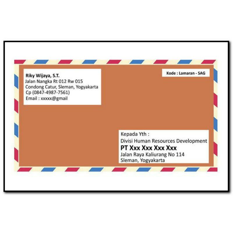 Terutama untuk mereka yang tinggal di negara berkembang dengan tingkat pendidikan yang rendah. Cara menulis alamat di amplop surat lamaran kerja contoh seputar. Contoh Kop Surat Lamaran Kerja Di Amplop Pada saat kita bermaksud ingin memberikan surat lamaran kerja ke sebuah perusahaan tentunya harus disertai dengan amplop suratnya agar terlihat lebih profesional dan mengesahkan penulisan amplop lamaran kerja juga tidak dapat ditulis dengan sembarangan kita harus membuatnya sesuai dengan format penulisan yang baik dan benar dengan.