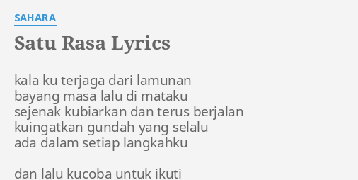 Satu Rasa Lyrics By Sahara Kala Ku Terjaga Dari