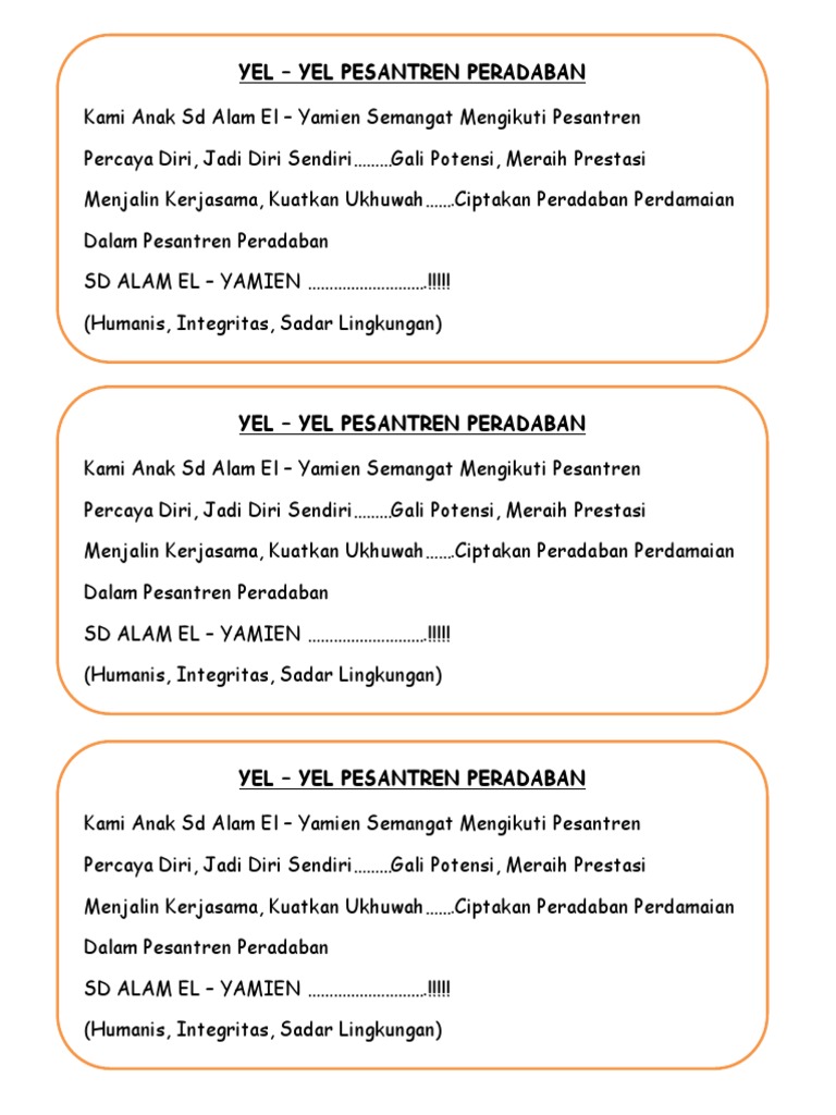 42 Contoh Kosa kata Bahasa Arab untuk Benda-benda yang Ada di Rumah. Yel-Yel selalu menjadi penyemangat setiap mengawali kegiatan ataupun tugas yang di emban. Klik pada judul artikel untuk memulai membaca.